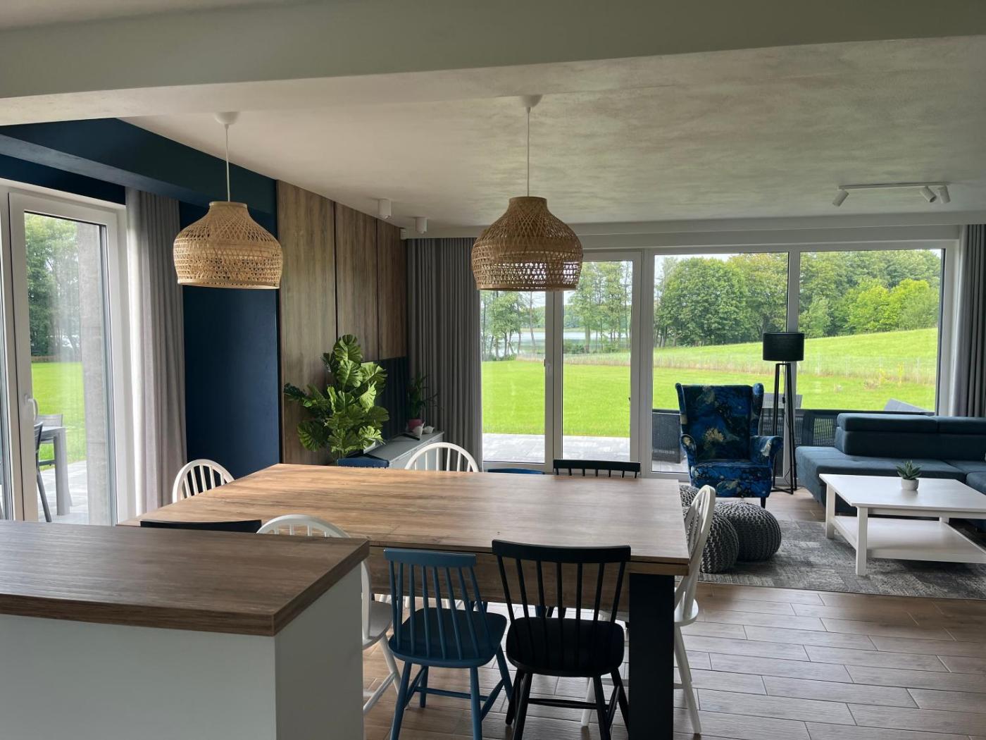 Willa. Guests will have a special experience as the villa features a fireplace. Featuring a private entrance, this villa consists of 1 living room, 5 separate bedrooms and 3 bathrooms with a bath and a shower. Guests will find a stovetop, a refrigerator, a dishwasher and kitchenware in the well-fitted kitchen. The villa also offers a barbecue. Boasting a terrace with lake views, this villa also provides a coffee machine and a flat-screen TV. The unit offers 11 beds. Willa - 10 osobowy. Powierzchnia pokoju ok.: 180 mkw.