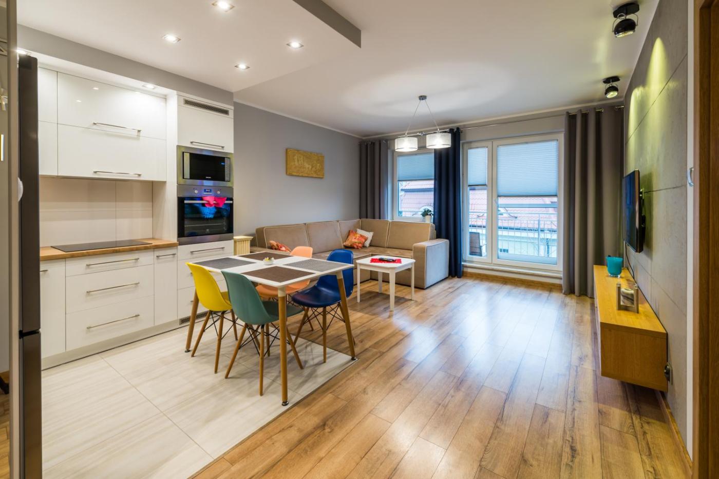 Apartament z 1 sypialnią. Meals can be prepared in the well-fitted kitchenette, which has a stovetop, a refrigerator, a dishwasher and kitchenware. This air-conditioned apartment is comprised of a flat-screen TV with satellite channels, a private bathroom as well as a balcony. The unit has 2 beds. Apartament - 4 osobowy. Powierzchnia pokoju ok.: 44 mkw.