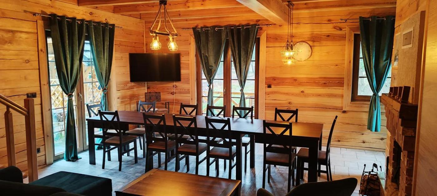 Domek. Guests will have a special experience as this chalet features a fireplace. This spacious chalet is comprised of 1 living room, 4 separate bedrooms and 4 bathrooms with a walk-in shower. Guests will find a stovetop, a refrigerator, a dishwasher and kitchenware in the kitchen. The chalet also has a barbecue. Featuring a terrace with garden views, this chalet also offers a washing machine and a flat-screen TV. The unit offers 10 beds. Domek - 12 osobowy. Powierzchnia pokoju ok.: 118 mkw.