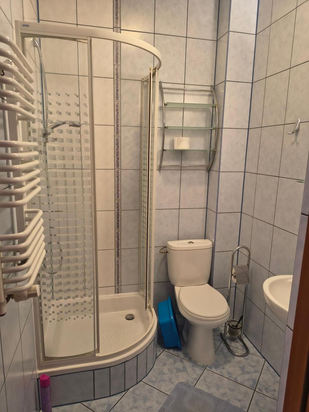 Pokój trzyosobowy z łazienką. The triple room features soundproof walls, a dining area, as well as a private bathroom boasting a shower and a hairdryer. Guests will find a refrigerator, kitchenware, a microwave and an electric kettle in the fully equipped kitchen. The triple room also comes with a barbecue. This triple room has a wardrobe, a dressing room, a flat-screen TV and a balcony. The unit has 3 beds. Pokój Trzyosobowy - 3 osobowy. Powierzchnia pokoju ok.: 22 mkw. ;