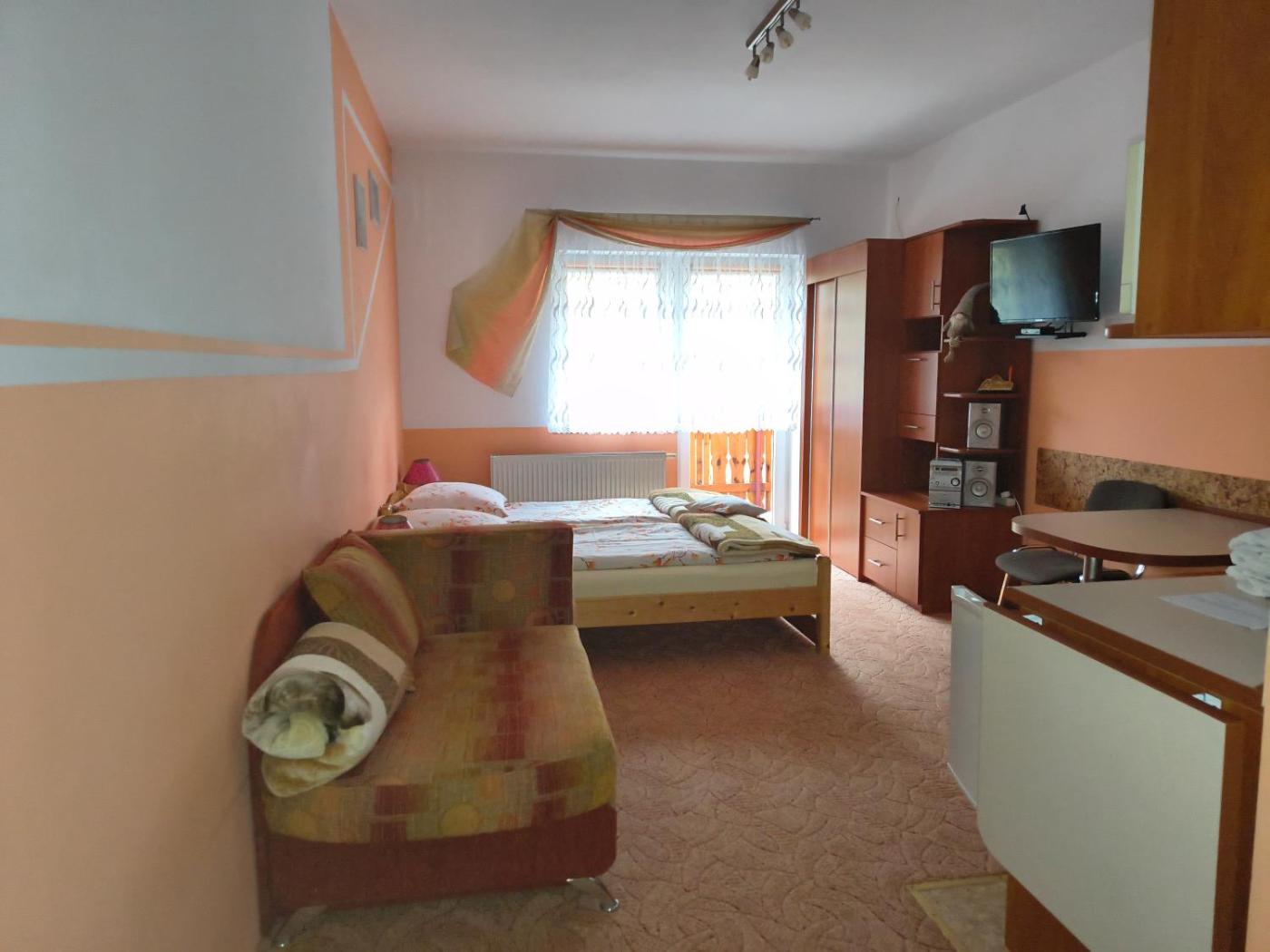 Pokój dwuosobowy z prywatną łazienką. Guests will find a refrigerator, kitchenware, a microwave and an electric kettle in the kitchen. The double room also has a barbecue. The double room offers soundproof walls, a dining area, a balcony with garden views as well as a private bathroom featuring a shower. The unit offers 1 bed. Pokój Dwuosobowy - 2 osobowy. Powierzchnia pokoju ok.: 20 mkw. ;