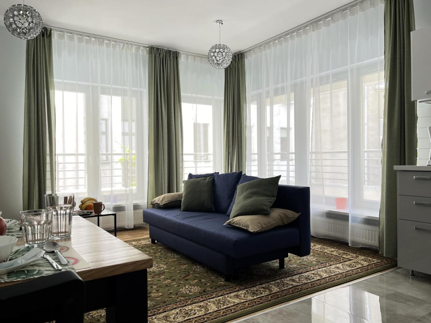 Apartament z 1 sypialnią. Boasting a private entrance, this apartment features 1 living room, 1 separate bedroom and 1 bathroom with a shower and a hairdryer. Guests can make meals in the kitchenette that has a stovetop, a refrigerator, a dishwasher and kitchenware. The apartment features a flat-screen TV with streaming services, a washing machine, soundproof walls, a tea and coffee maker as well as ancourtyard view. The unit has 2 beds. Apartament - 2 osobowy. Powierzchnia pokoju ok.: 44 mkw.