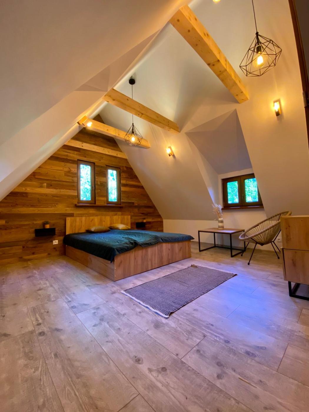 Dom z 2 sypialniami. This holiday home features a fireplace. Guests will find a stovetop, a refrigerator, kitchenware and a microwave in the fully equipped kitchen. The holiday home also comes with a barbecue. The unit has a private entrance, garden views, a terrace and winechampagne is offered for guests. The unit has 4 beds. Dom wakacyjny - 6 osobowy. Powierzchnia pokoju ok.: 80 mkw.